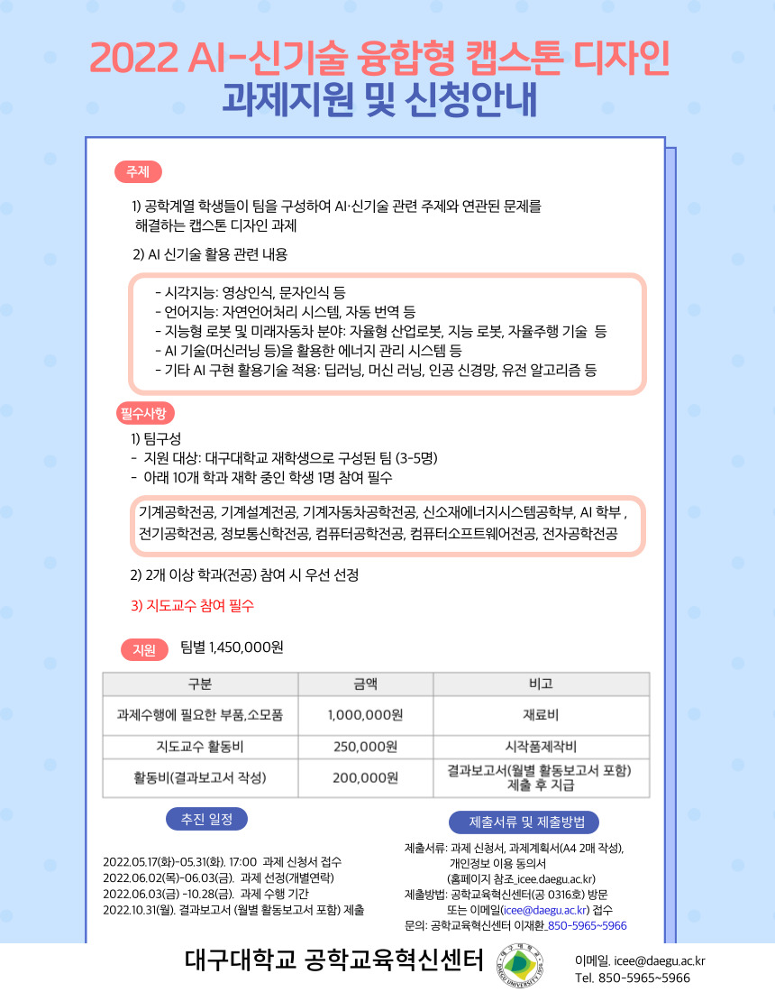 -제출방법: 공학교육혁신센터(공 0316호) 방문 또는 이메일(icee@daegu.ac.kr) 접수