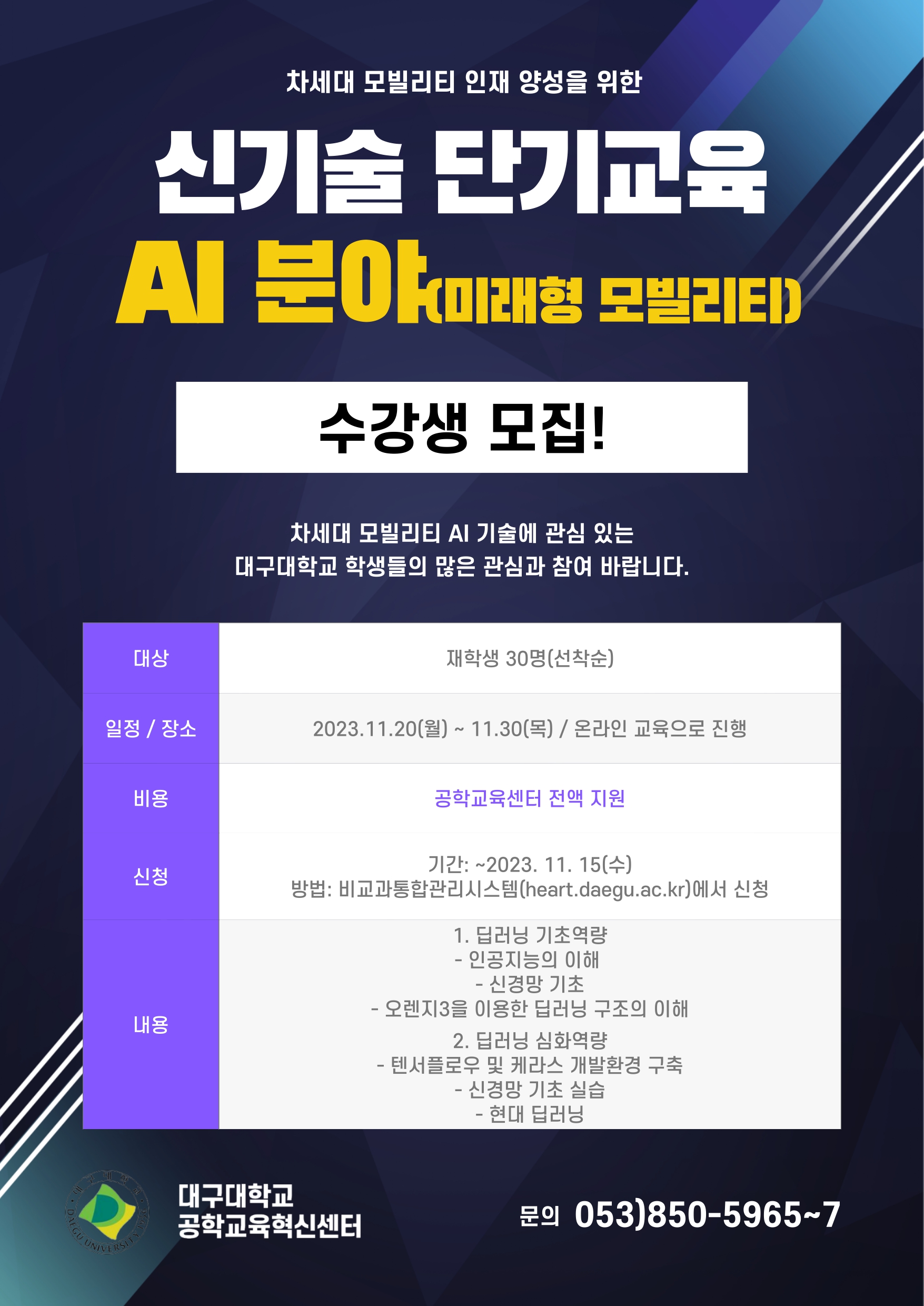 2. 대상: 대구대학교 재학생 30명(선착순)