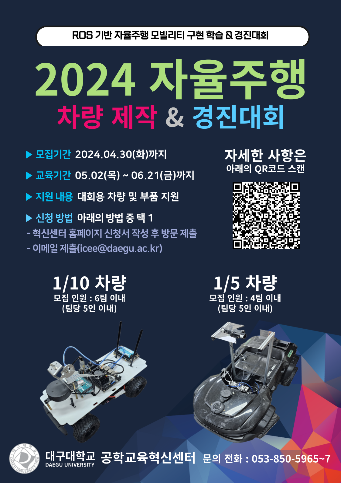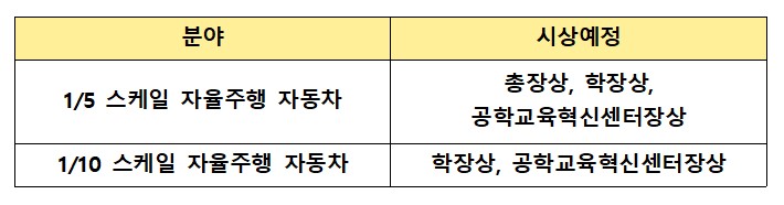 - 1/10 자율주행 자동차: 6팀 이내(팀당 5인 이내)